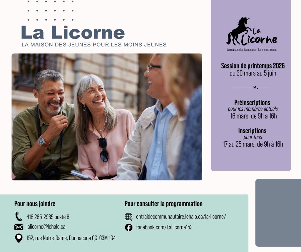 En janvier 2022, le Halo Entraide communautaire et Aide à domicile s’est porté acquéreur de la bâtisse, sise au 152 rue Notre-Dame (Vieux Donnacona) pour développer son projet La Licorne, une maison des jeunes pour les 50 ans et plus de toute la MRC de Portneuf.